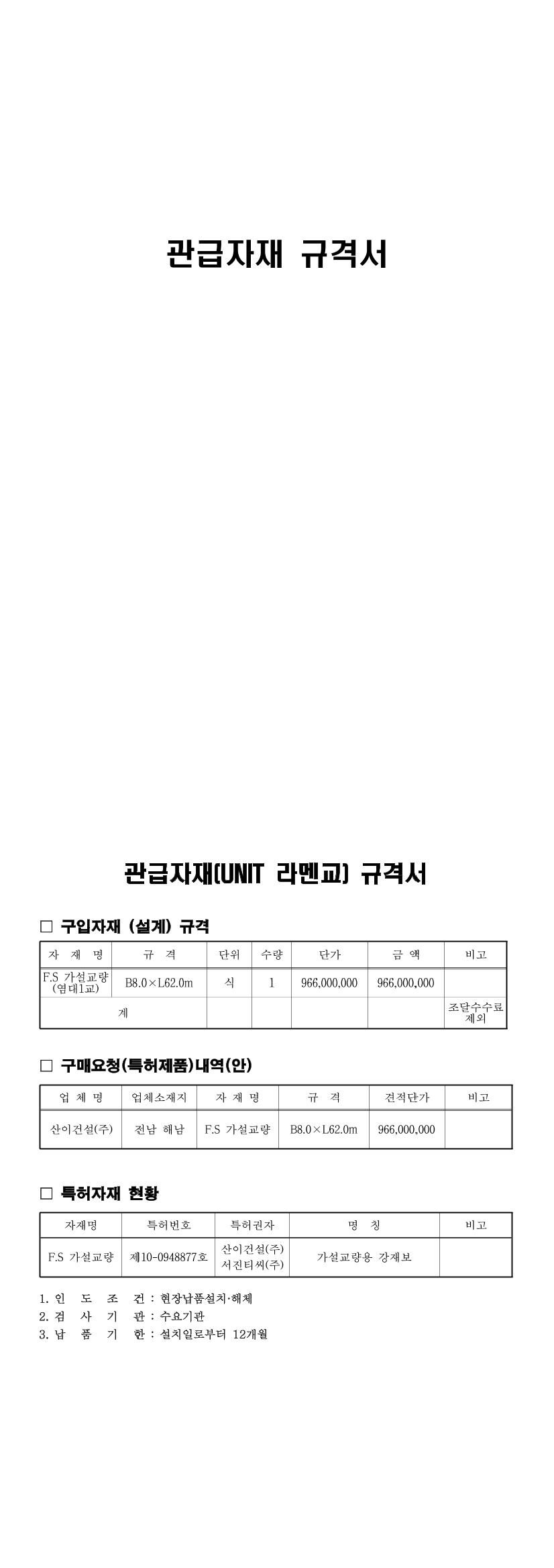 염대 자연재해위험개선지구 정비사업(3차분) 관급자재 가교(염대1교-특허공법) |