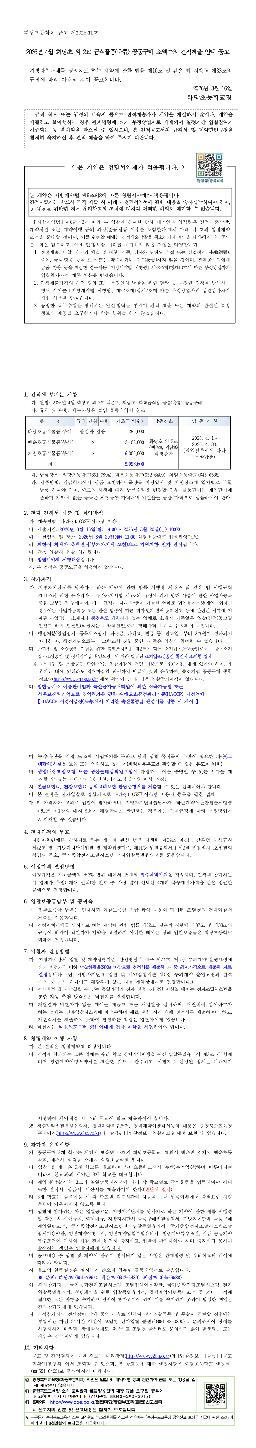 2026년 4월 화당초 외 2교 급식물품(육류) 공동구매 소액수의 견적제출 안내 공고 |