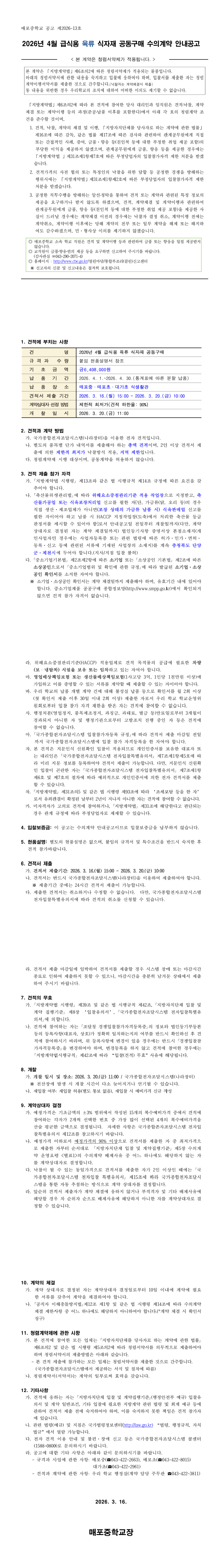 2026년 4월 급식용 육류 식자재 공동구매 수의계약 안내공고 |