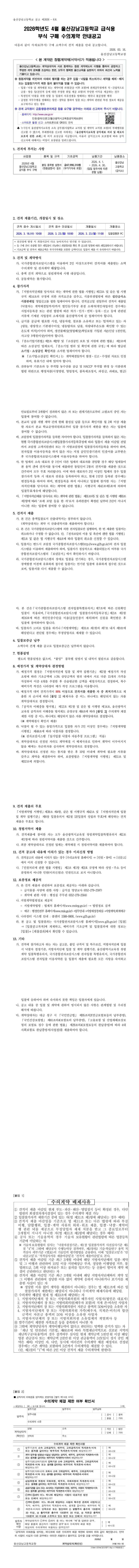 2026학년도 4월 울산강남고등학교 급식용 부식 구매 수의계약 안내 공고 |