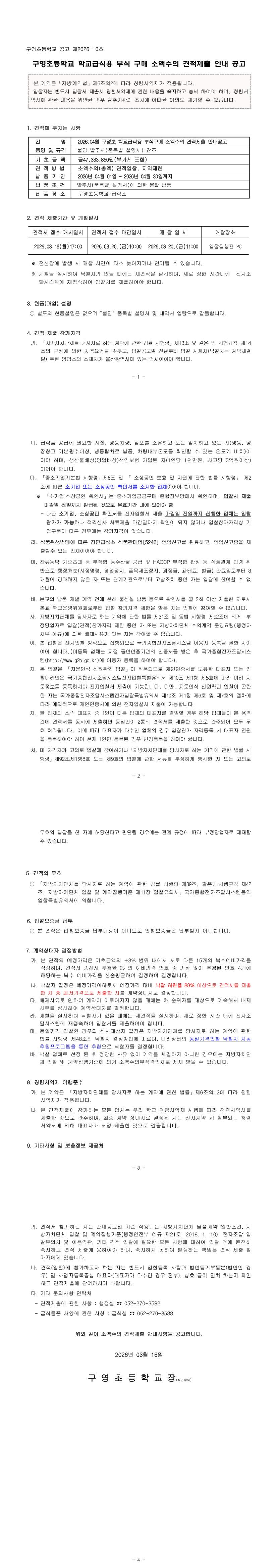 2026년 04월 구영초 학교급식용 부식구매 소액수의 전자견적제출 안내공고 |