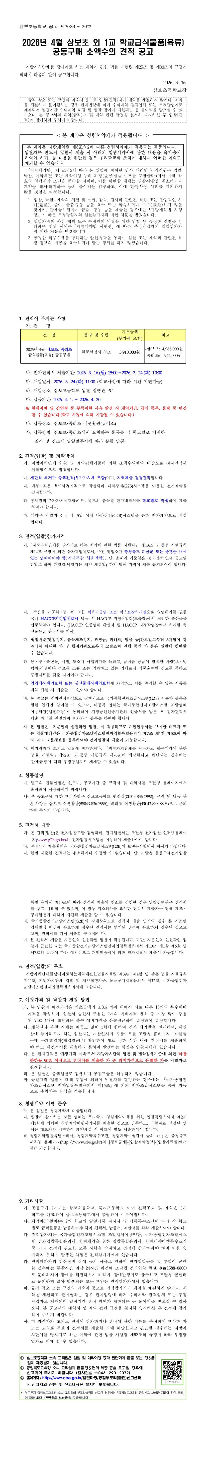 2026년 4월 삼보초 외 1교 학교급식물품(육류) 공동구매 소액수의 견적 공고 |