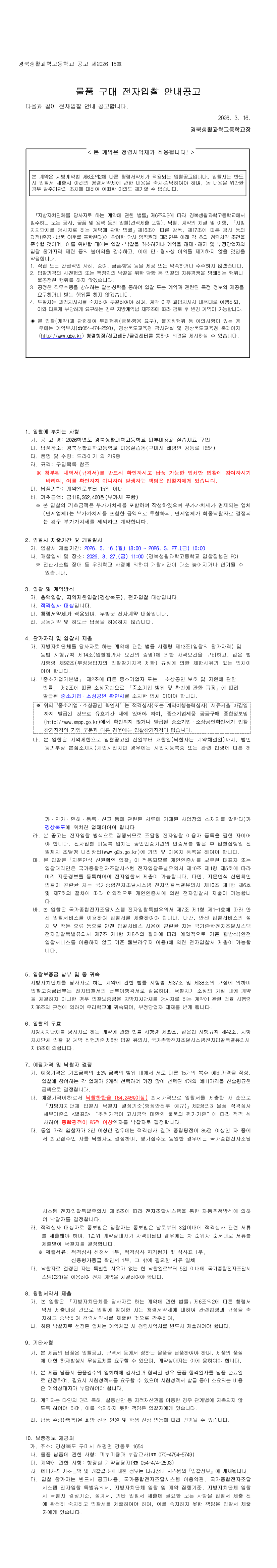 2026학년도 경북생활과학고등학교 피부미용과 실습재료 구입 |