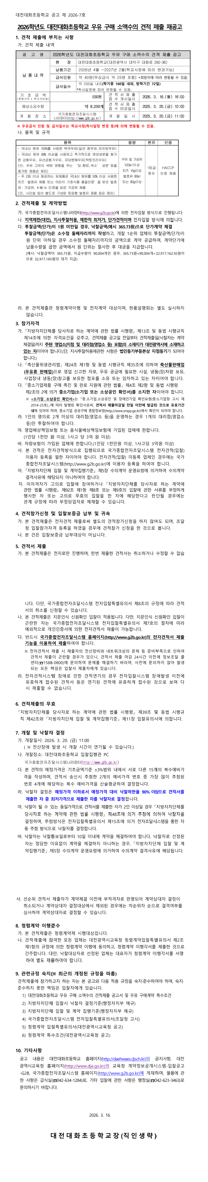 2026학년도 대전대화초등학교 우유 구매 소액수의 견적 제출 공고 |