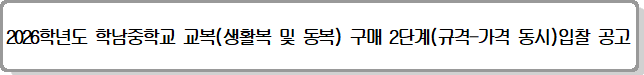 2026학년도 학남중학교 교복(생활복 및 동복) 구매 2단계(규격-가격 동시)입찰 공고