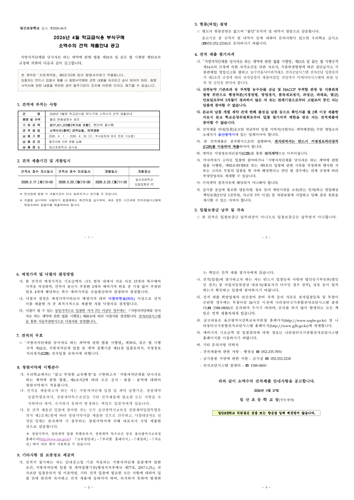 2026년 4월 일산초등학교 부식 구매 소액수의 견적제출 공고 |