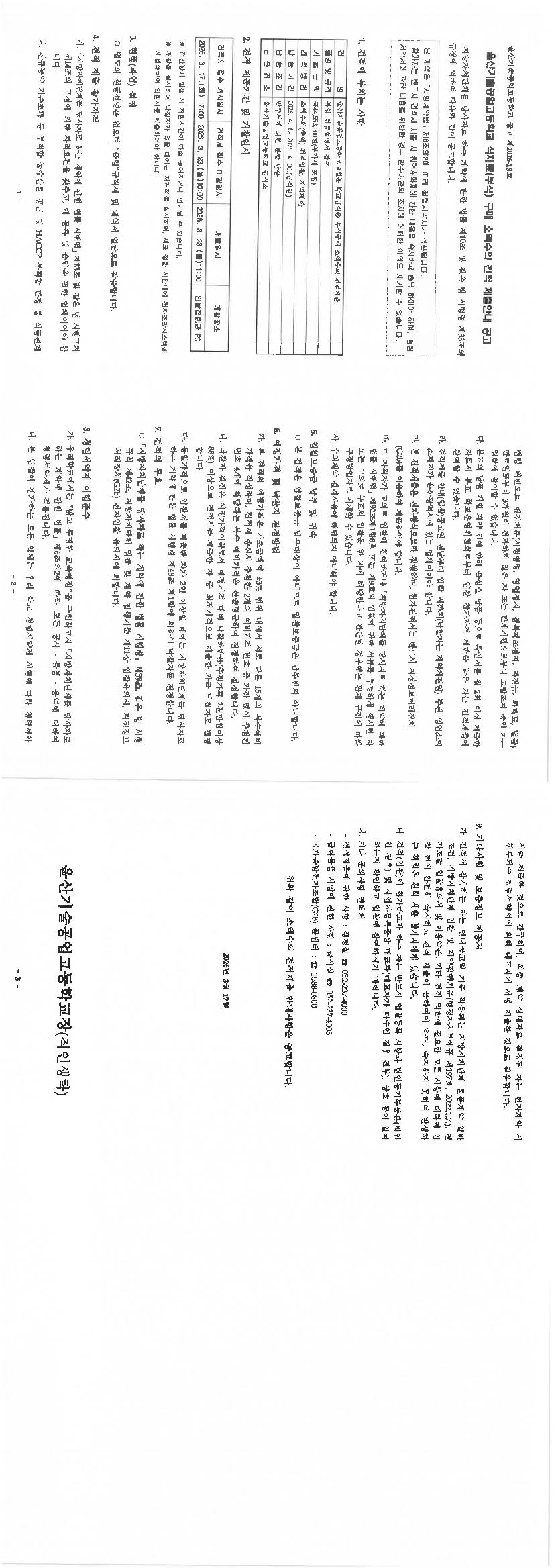 울산기술공업고등학교 4월분 학교급식용 부식물품 구매 소액수의 |