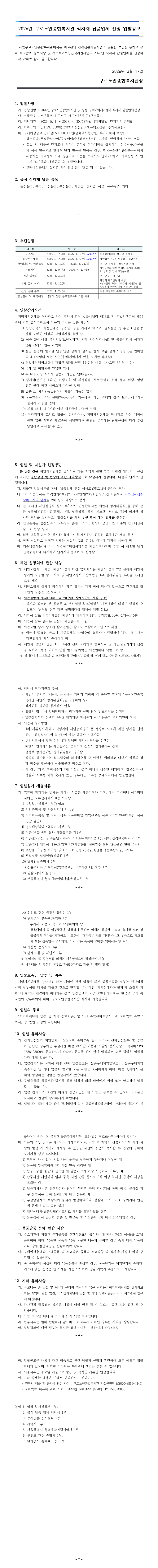 2026년 구로노인종합복지관 식자재 납품업체 선정 입찰공고 |
