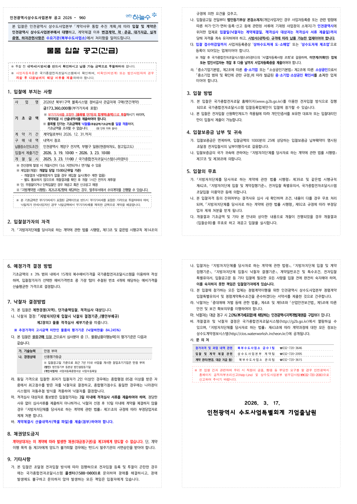 2026년 북부1구역 블록시스템 정비공사 관급자재 구매(연간계약) |