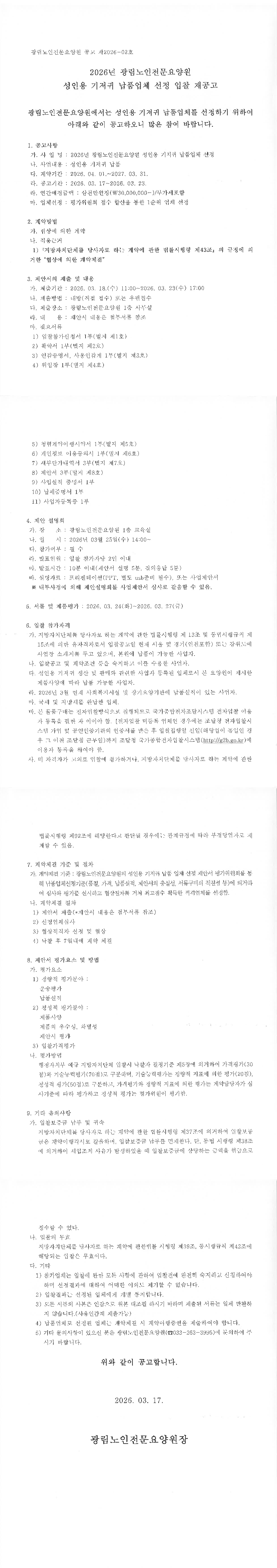 2026년 광림노인전문요양원 성인용 기저귀 납품업체 선정 입찰 재공고 |