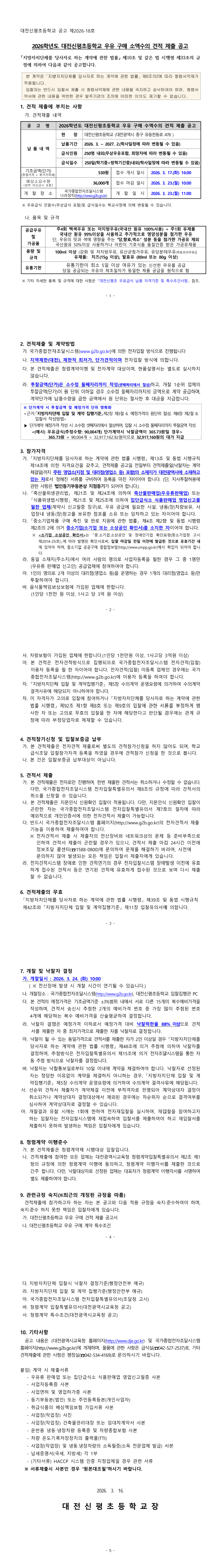2026학년도 대전신평초등학교 우유 구매 계약 소액수의 견적 제출 공고 |