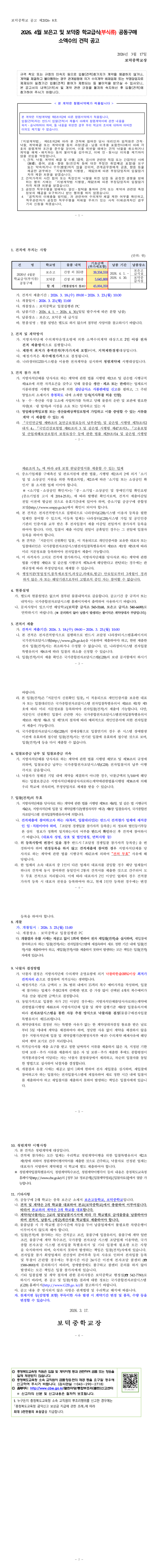 2026.4월 보은고 및 보덕중 학교급식(부식류) 공동구매 소액수의 견적 공고 |
