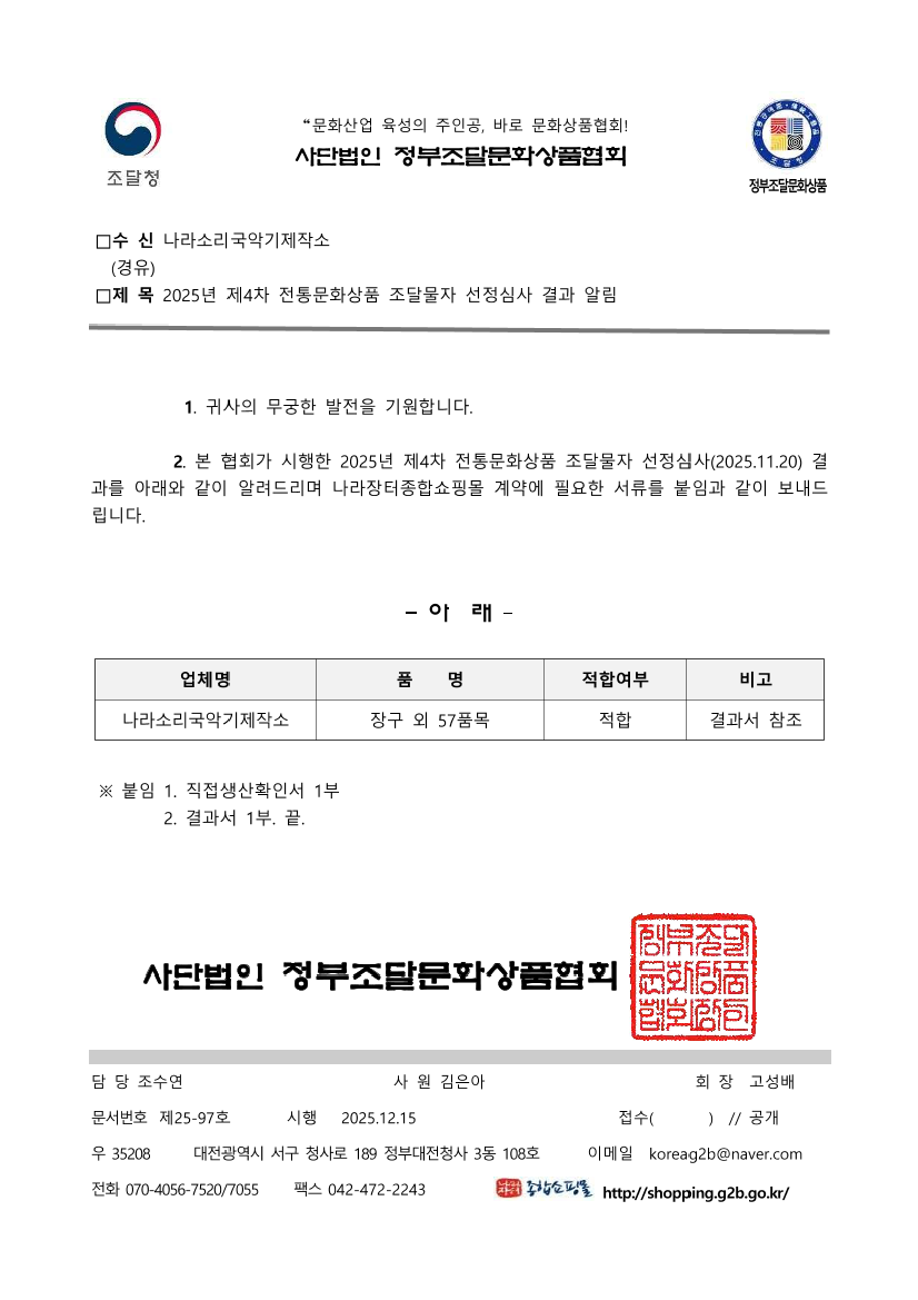 전통문화상품(3자단가) 계약 체결_ 나라소리국악기제작소 |