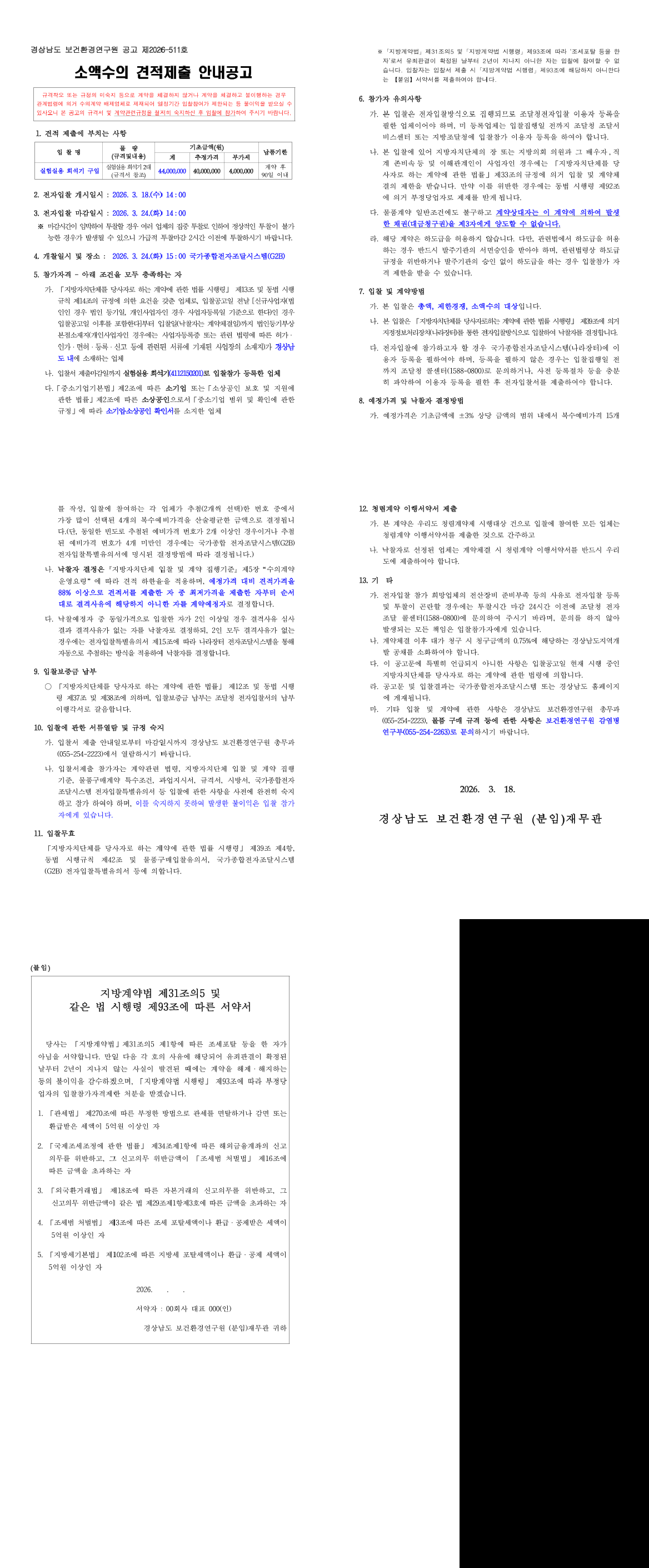 소액수의 견적제출 안내 공고(실험실용 희석기 구입) |