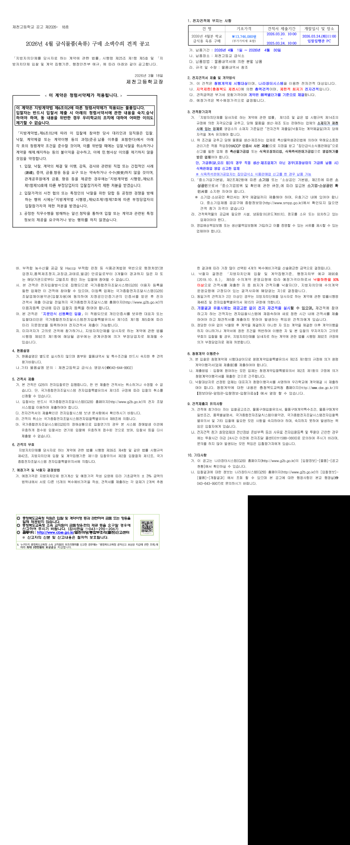 2026. 4월 제천고등학교 급식물품(육류) 소액수의 견적 공고 |