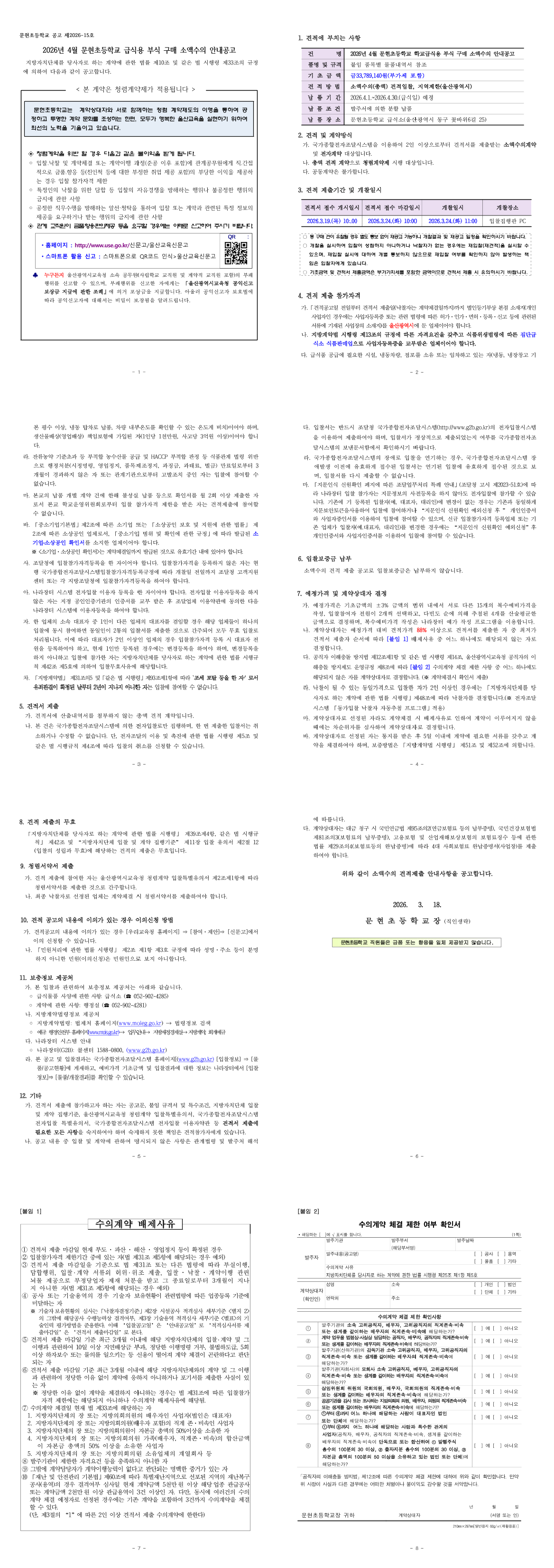 2026년 4월 문현초등학교 급식용 부식 구매 소액수의 안내공고 |