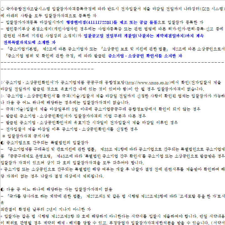 ㆍ본 공고에 입찰 참여하는 경우, 입찰 참여자의 주된 영업소재지(법인인 경우 본사 소재지)가 참가가