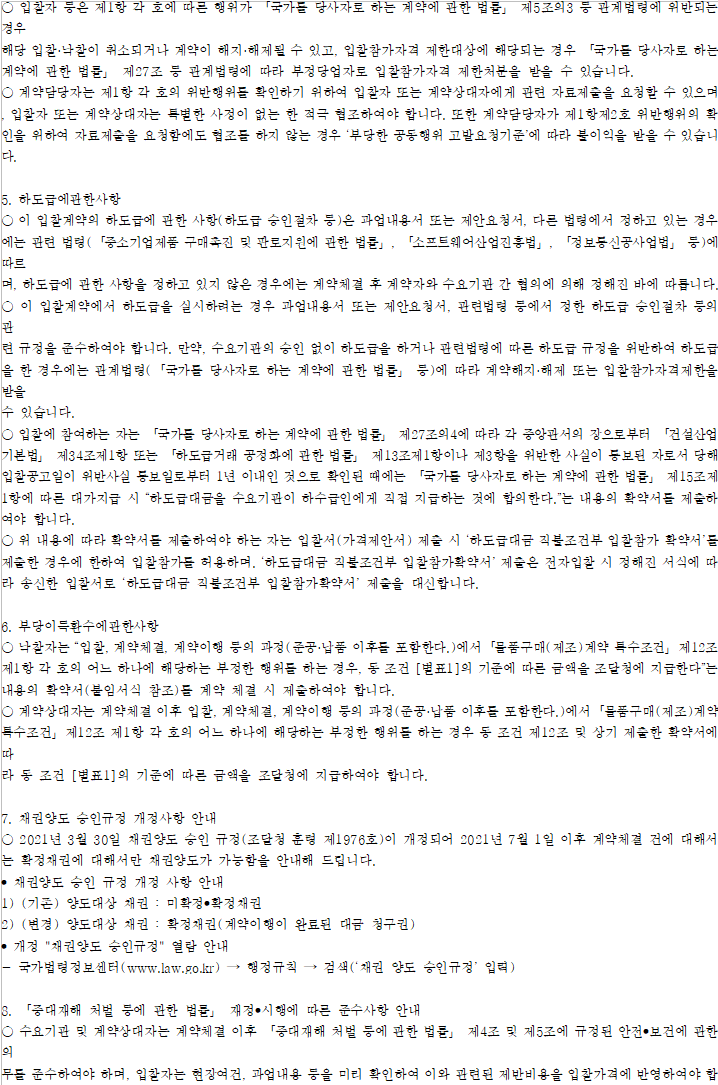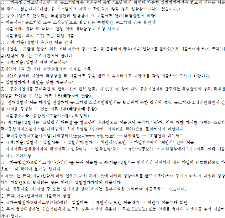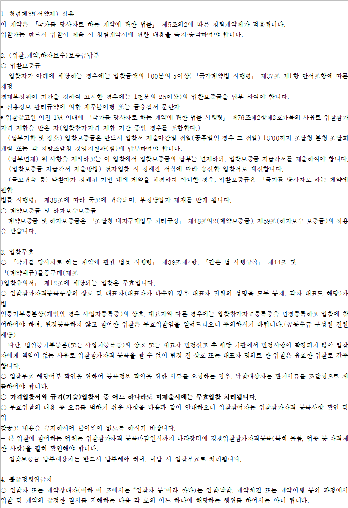 기타 세부사항은 전자입찰 공고서에 첨부된 과업내용서, 내역서 등을 반드시 확인하시기 바랍니다.
