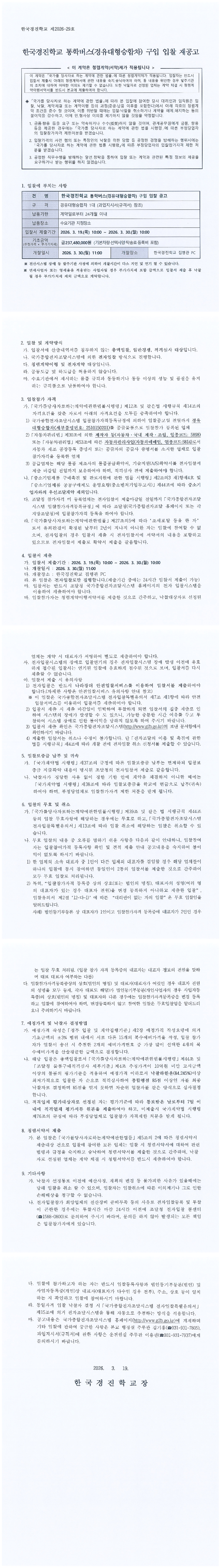 한국경진학교 통학버스(경유대형승합차) 구입 입찰 재공고 |
