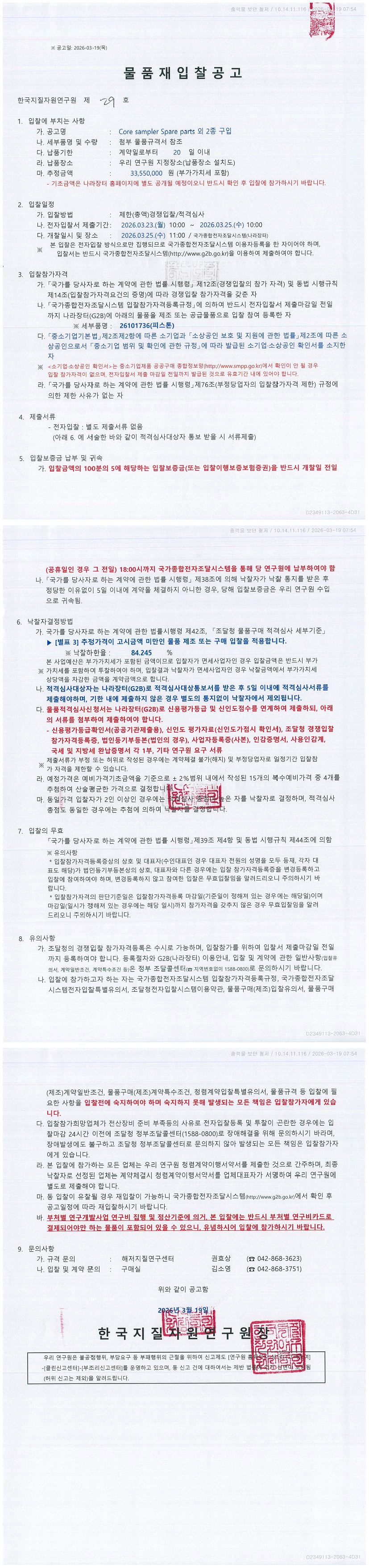 Core sampler Spare parts 외 2종 구입 |
