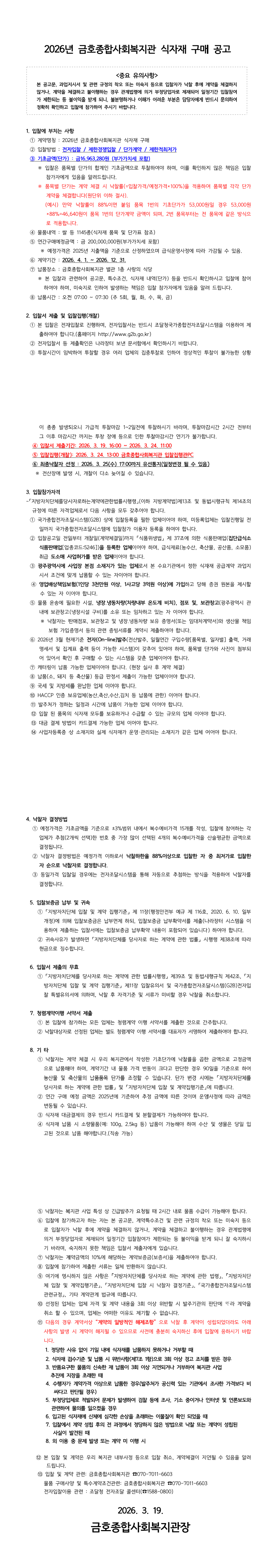 2026년 금호종합사회복지관 식자재 구매 공고 |