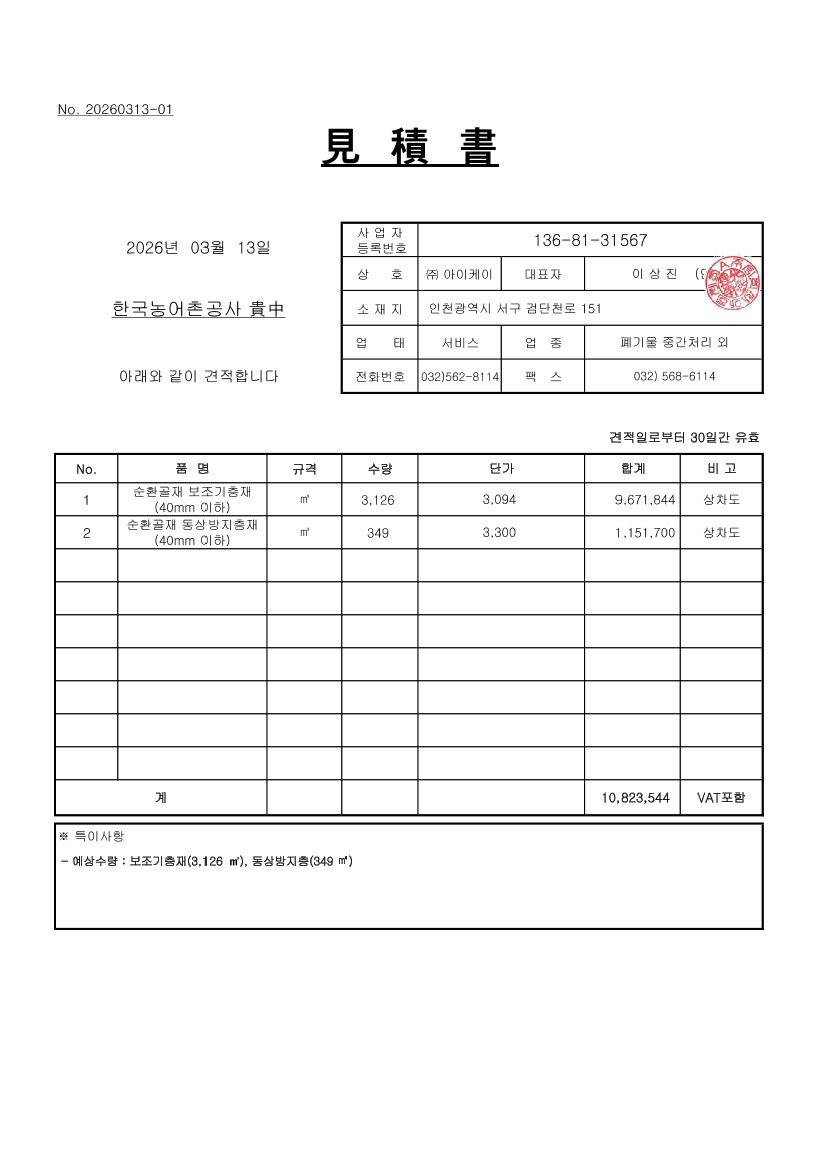 석모 마을하수도 정비사업 관급자재(순환골재) |