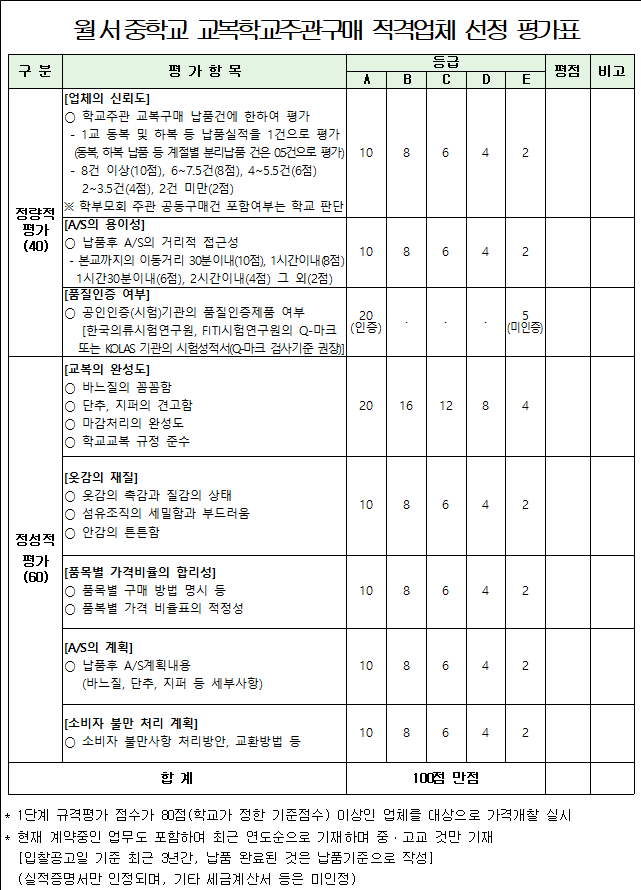2026학년도 월서중학교 교복(하복·동복) 구매 2단계 규격·가격 동시 입찰 공고