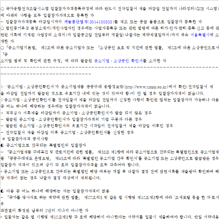 ㆍ본 공고에 입찰 참여하는 경우, 입찰 참여자의 주된 영업소재지(법인인 경우 본사 소재지)가 참가가