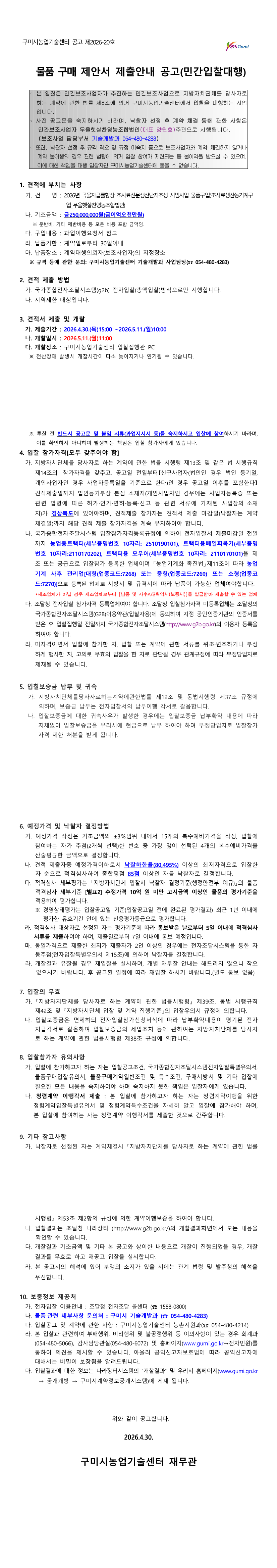 2026년 곡물자급률향상 조사료전문생산단지조성 시범사업 물품구입(조사료생산농기계구입_무을햇살찬영농조합법인) |