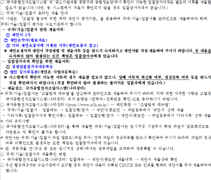 기타 세부사항은 전자입찰 공고서에 첨부된 과업내용서, 내역서 등을 반드시 확인하시기 바랍니다.
