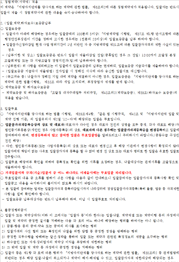 이 입찰 설명서는 입찰자와 낙찰자가 숙지하고 준수하여야 할 사항을 기재한 것으로써 모든 입찰희망자는 이를 열람하여야 합니