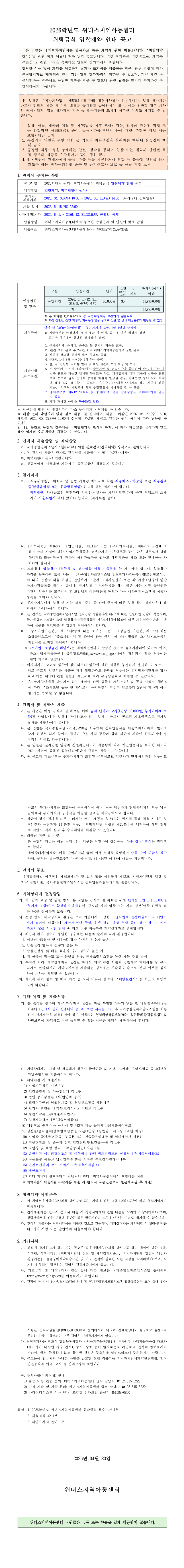 2026년 위더스지역아동센터 급식납춤 업체 선정 공고 |