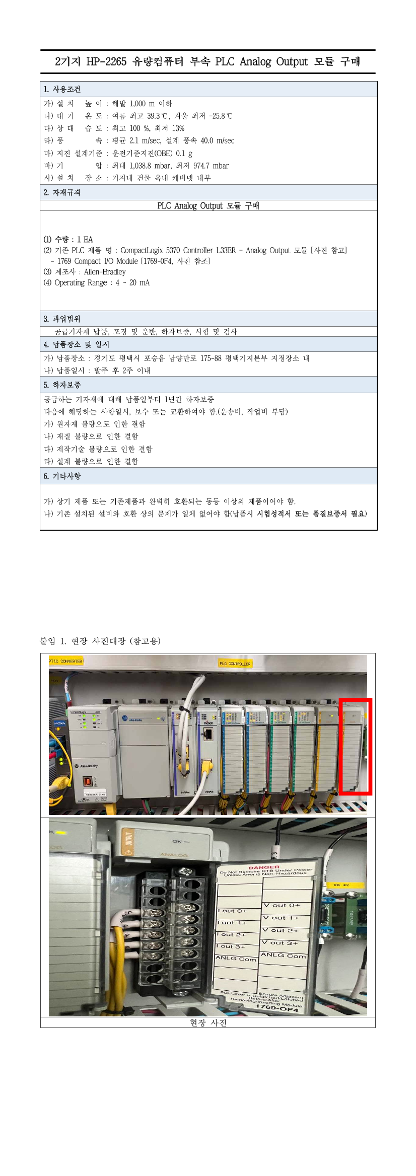 유량컴퓨터 부속 PLC Analog Output Module 구매(Allen-Bradley) |