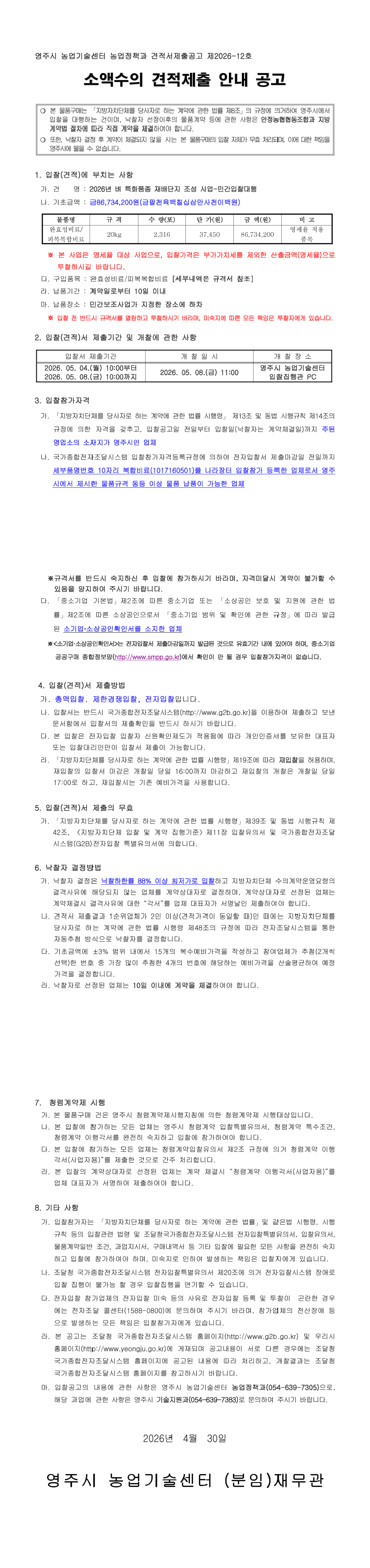 2026년 벼 특화품종 재배단지 조성 사업-민간입찰대행 |