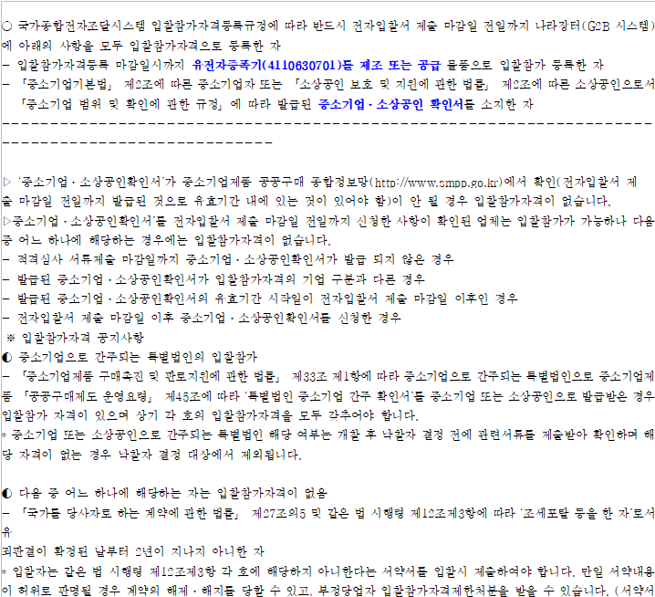 ○ (사후판정) 계약담당자는 「국가종합전자조달시스템 이용약관」 제11조 제1항에 따라 입찰참가자의 제출서류(입찰보증금, 입찰참가자격 포함)에 대한 적정성(적합) 여부를 개찰 이후에도 판정할 수 있습니다.