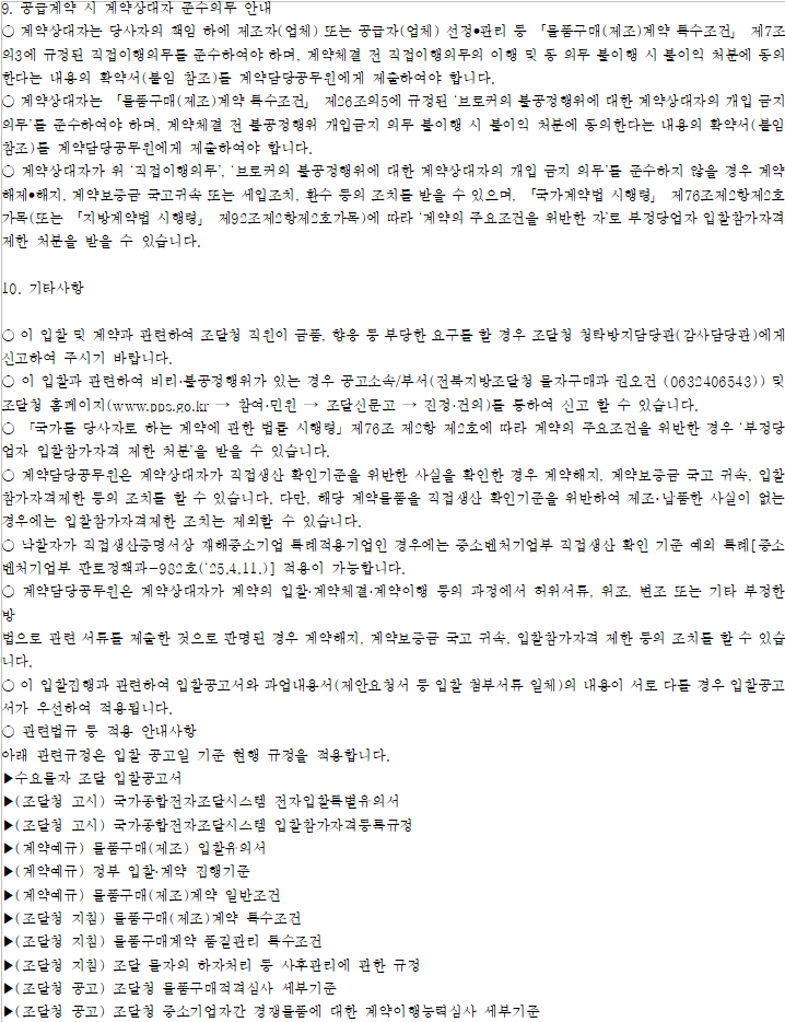 - 조달청 물품구매적격심사 세부기준 제4조 제1항 제3호 [별표](적격심사: 추정가격 고시금액 미만인 물품 제조 또는 구매입찰)