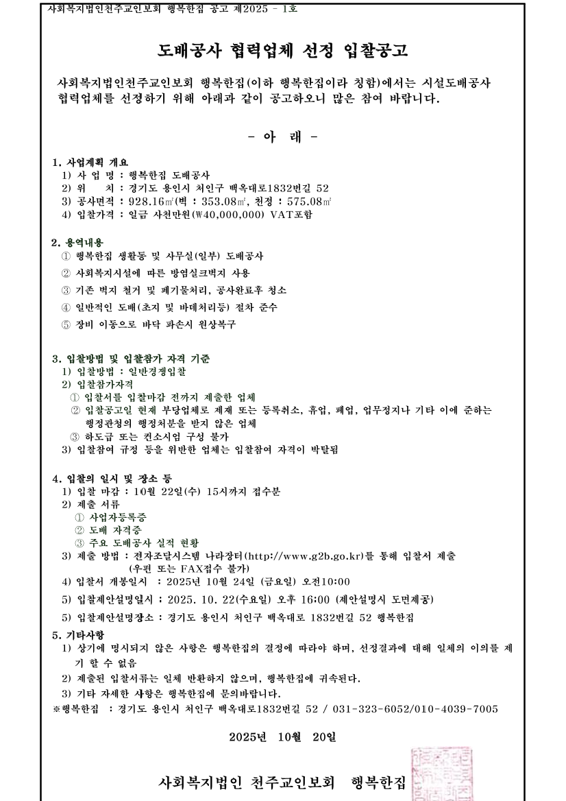 사회복지법인천주교인보회 행복한집 도배공사 |