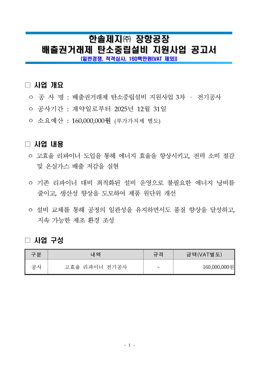 감축설비-3차-54-한솔제지-장항공장-고효율 리파이너 전기공사 |