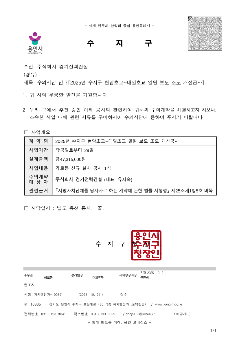 (수의시담) 2025년 수지구 현암초교~대일초교 일원 보도 조도 개선공사 |