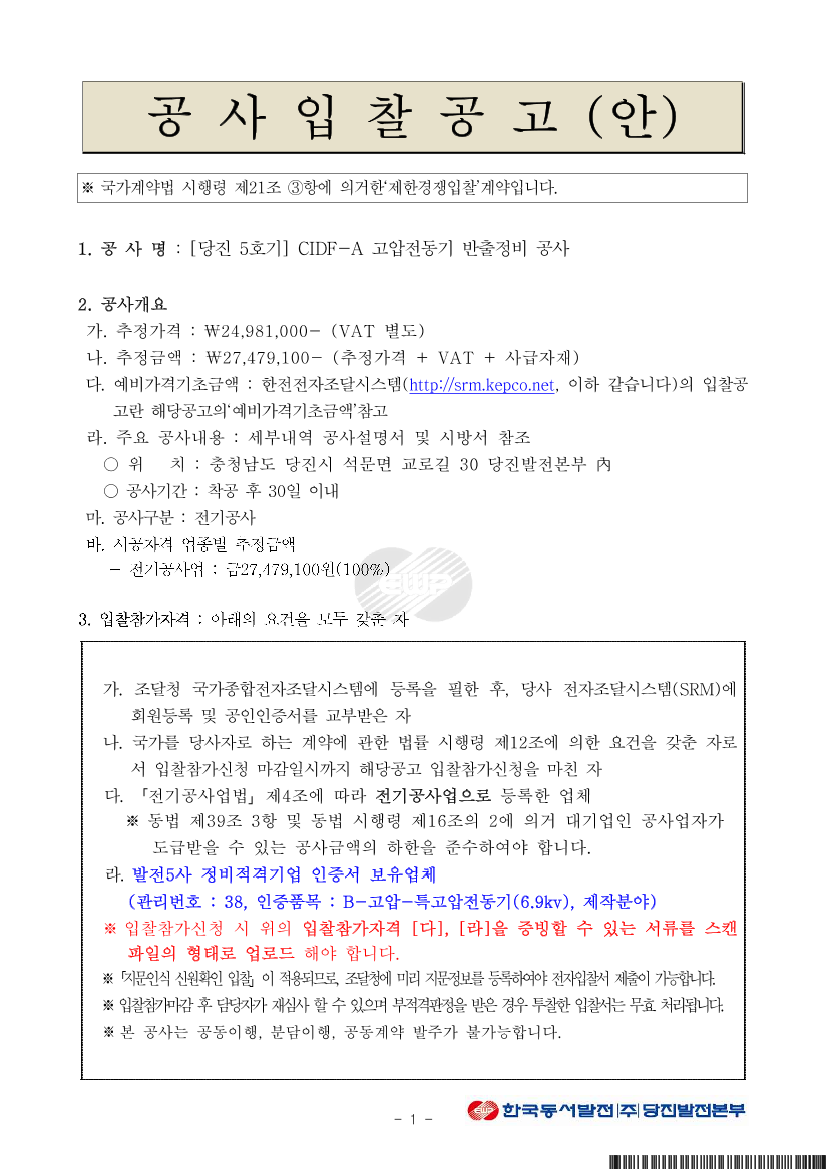 한국동서발전(주) 당진발전본부 경영지원처 계약부 |