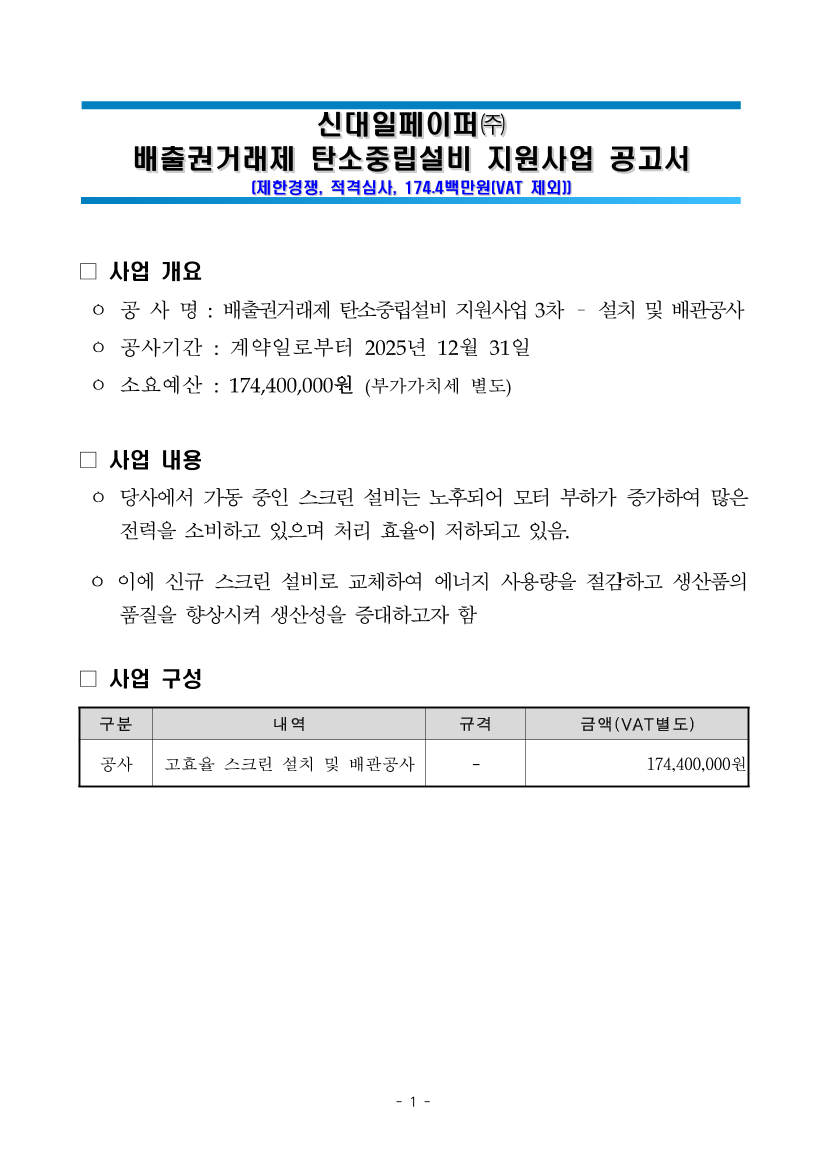 감축설비-3차-05-신대일페이퍼-대구공장-스크린-배관공사 |