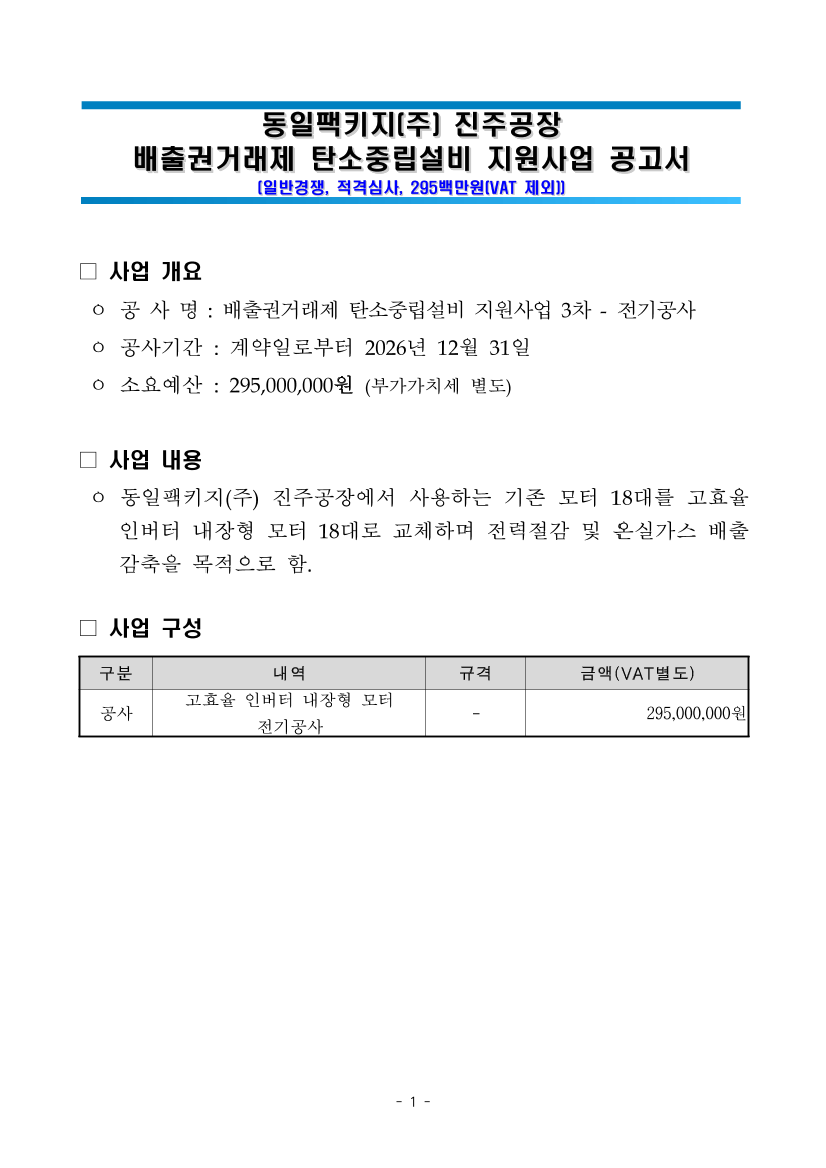 동일팩키지(주) 진주공장_고효율모터_전기공사 |