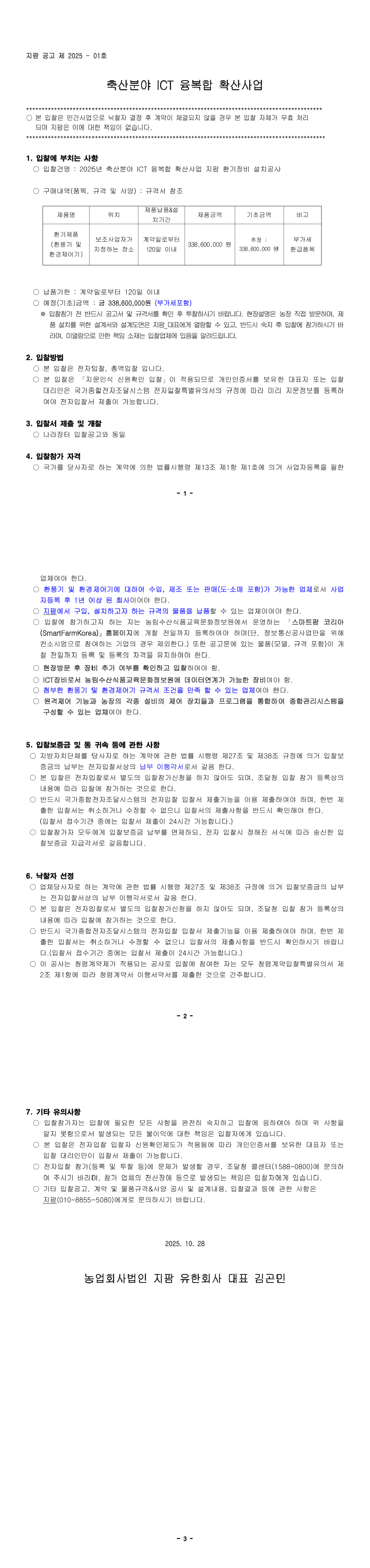2025년 축산분야 ICT 융복합 확산사업 지팜 환기장비 설치공사 |