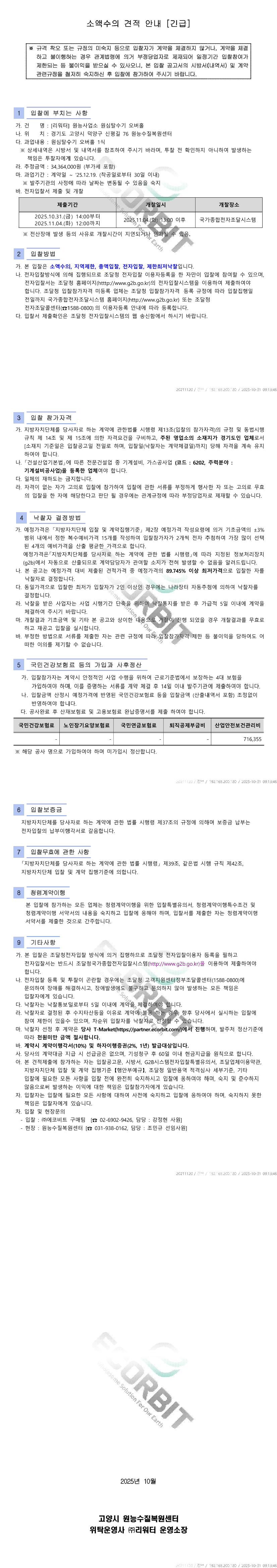 | 공고번호 | R25BK01125512-000 | 공고일시 | 2025/10/31 09:15 |