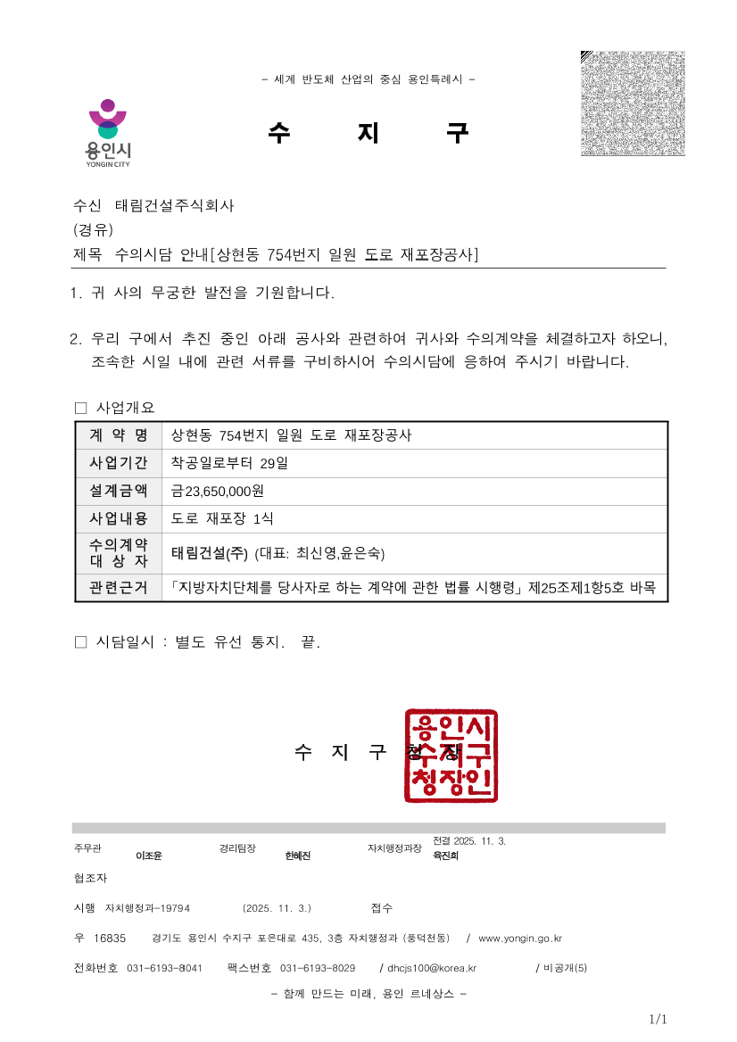 (수의시담) 상현동 754번지 일원 도로 재포장공사 |
