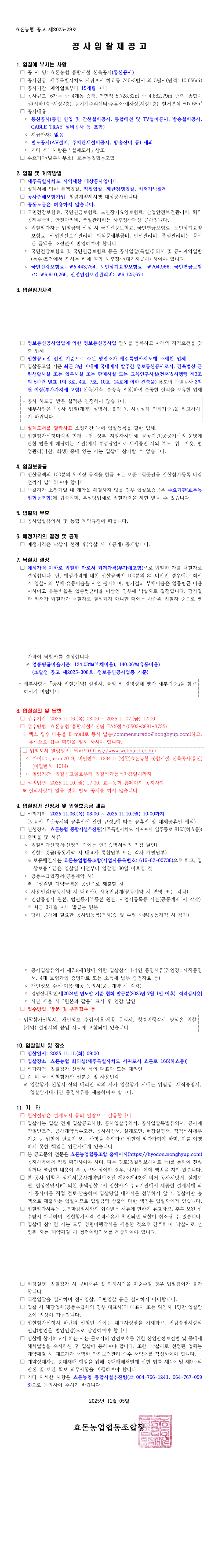 효돈농협 종합시설 신축공사(통신공사) 입찰 재공고 |