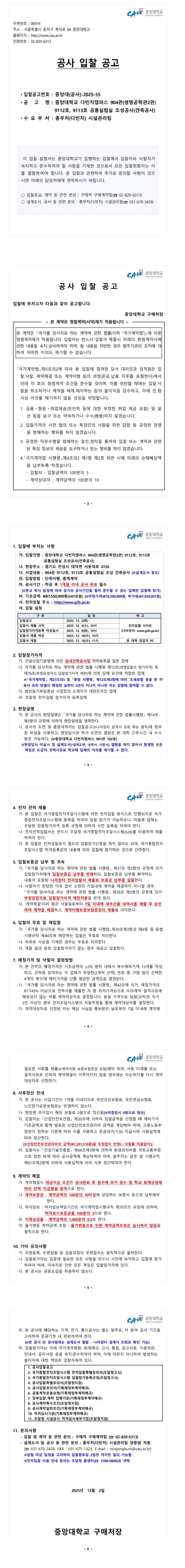 중앙대학교 다빈치캠퍼스 904관(생명공학관2관) 9112호, 9113호 공통실험실 조성공사(건축공사) |