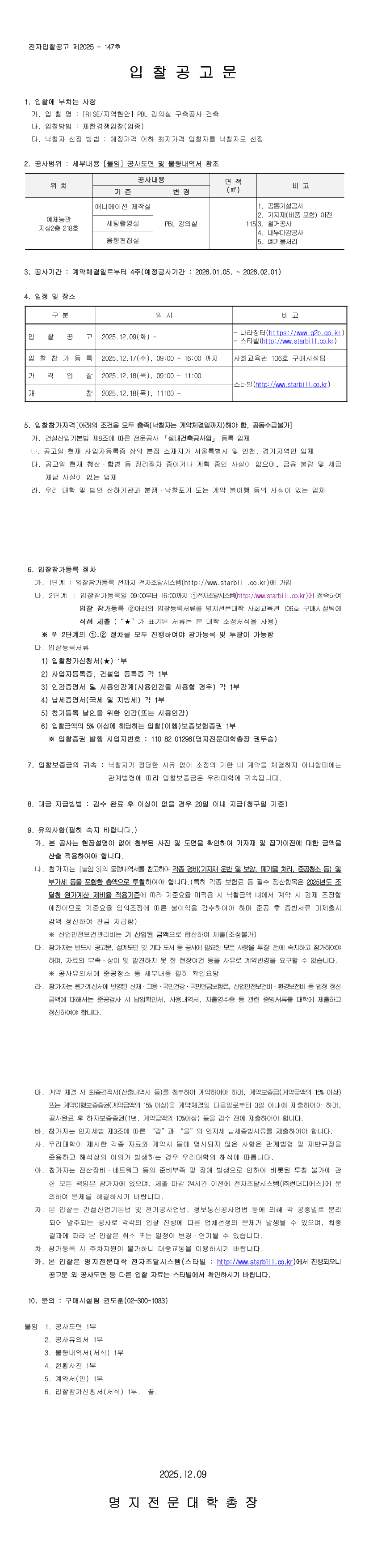 [RISE/지역현안] PBL 강의실 구축공사_건축 |