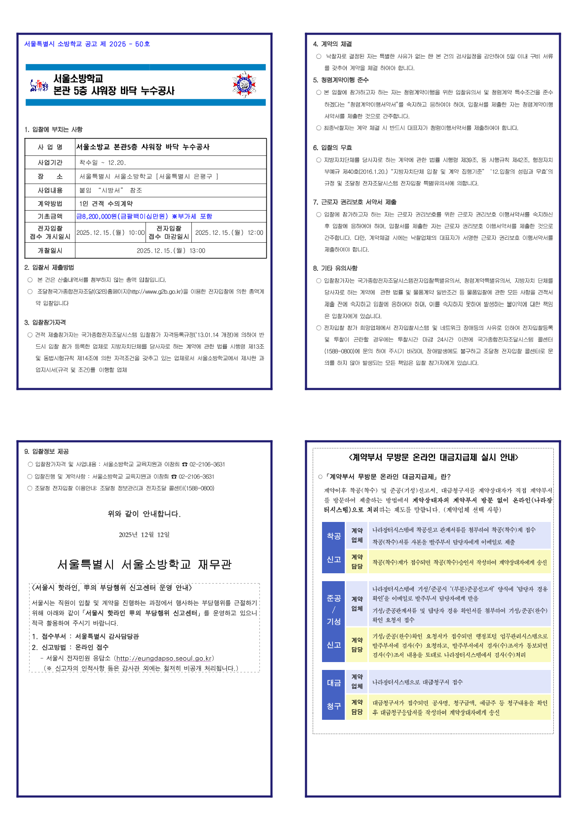 서울소방학교 본관 5층 샤워장 바닥 누수공사 |