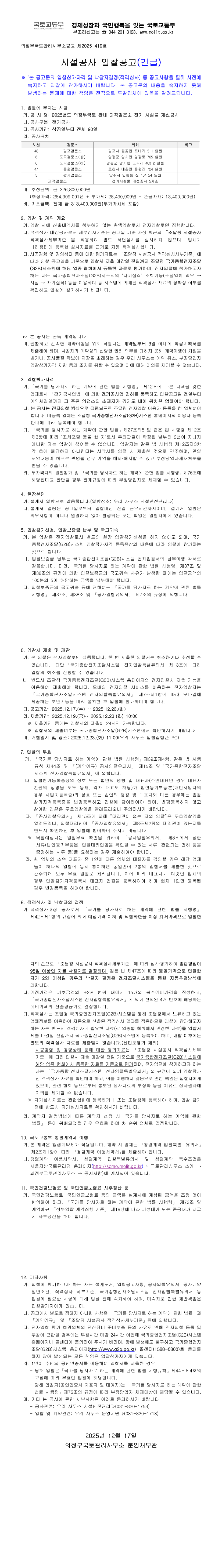 2025년도 의정부국토 관내 과적검문소 전기 시설물 개선공사 |